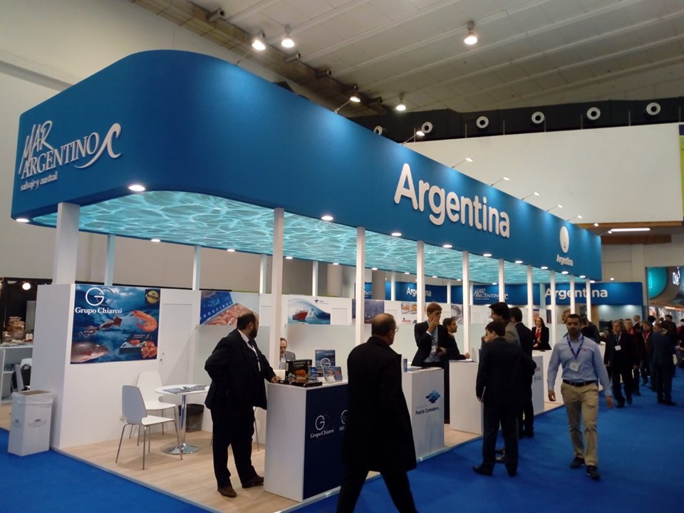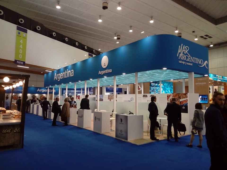 El Pabellón argentino (Hall Patio 4409) hospeda a 24 empresas nacionales exportadoras de productos de nuestros océanos: langostinos, camarones, centollas, merluzas, lubina, truchas de mar, pulpos, etc.