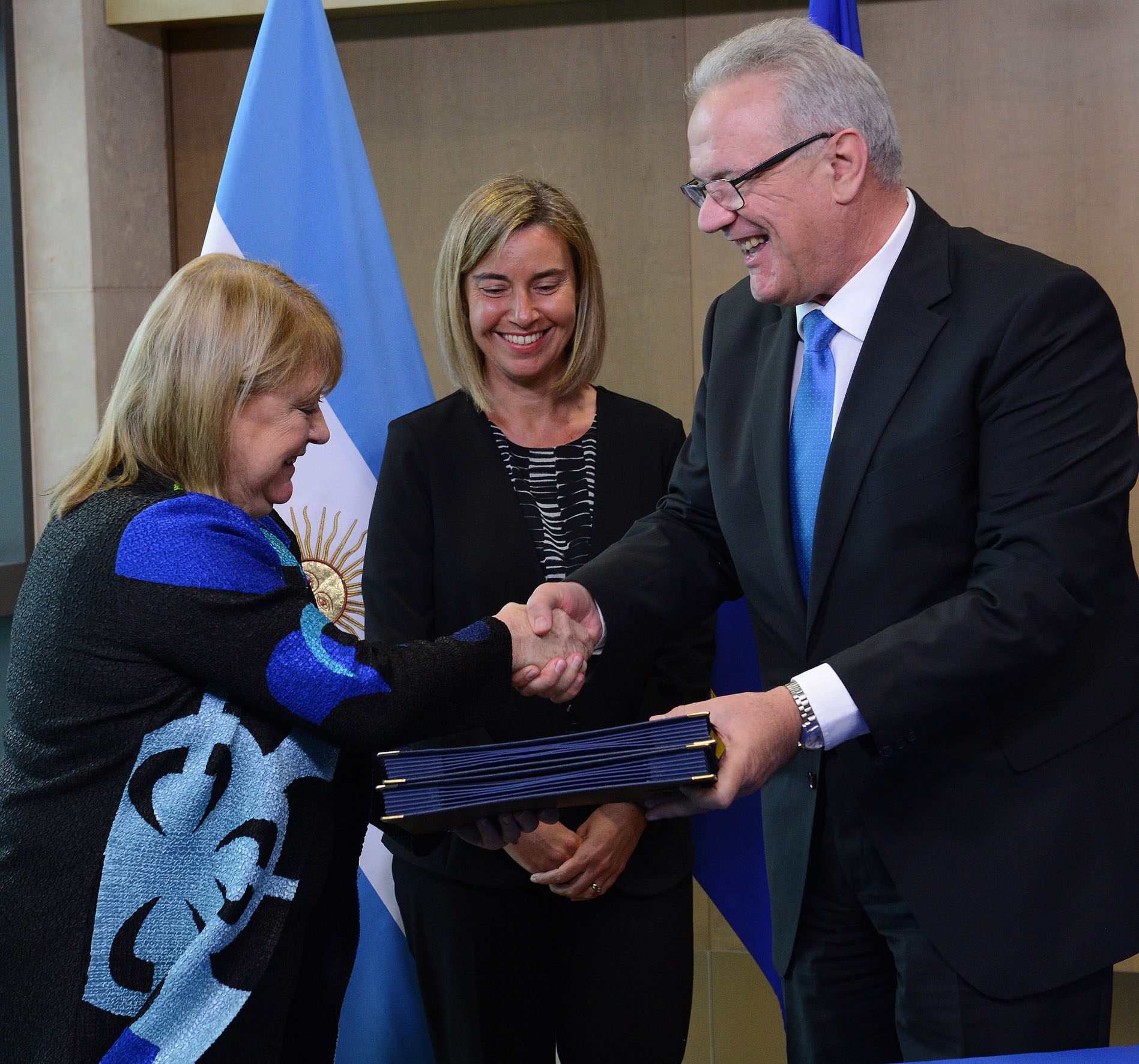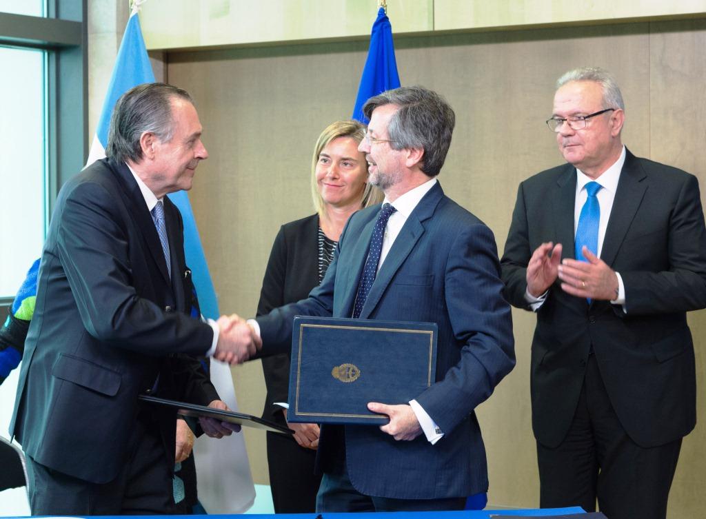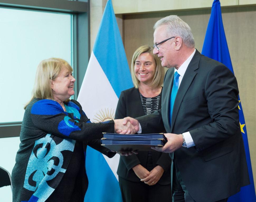 La canciller Susana Malcorra firmó hoy en Bruselas un acuerdo de cooperación con el comisario europeo de Cooperación Internacional y Desarrollo, Neven Mimica, para facilitar la ejecución coordinada de actividades de cooperación conjunta y aunar esfuerzos, recursos, habilidades y conocimientos para hacer frente a la pobreza y sus consecuencias, así como para promover el desarrollo sostenible.